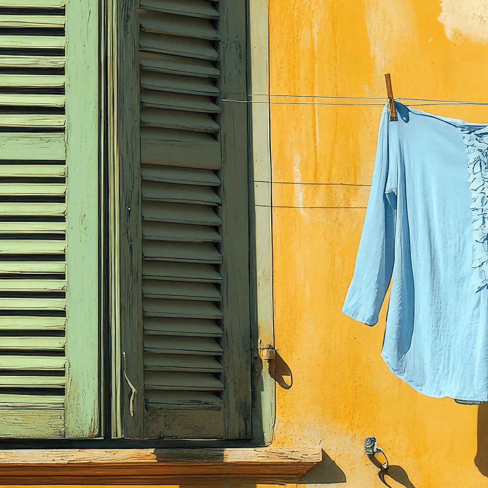 mediterraanse muur met half gesloten shutters en een enkel wasje