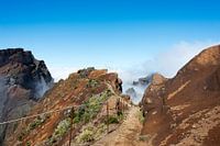 blue sky and brown rocks at the high mountains at madeira island called pico arieiro, the top is 1818 meters above sea level