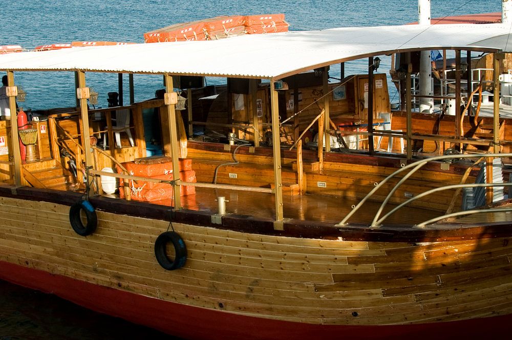 Boat on lake Tiberias, or lake galilee in Isael, type of boat from Jesus from the bible
