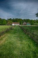 Een foto van een boerderij zoals het in het verleden uit had kunnen zien.