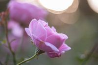 close up van een lichtroze herfstroos met een pastelkleurige bokeh achtergrond door het zonlicht