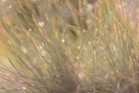 close up van blauw siergras met dauwdruppels waardoor er met zonlicht bokeh onstaat