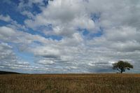 solitaire boom in frans landschap (montdore) onder prachtige wolkenlucht.
