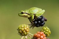 Koop dit landschapskunstwerk boomkikker op bramen 3 van Francois Debets op canvas, aluminium dibond, (ingelijste) fotoprint, behang en ArtFrame, op maat geprint in Fine-Art kwaliteit.