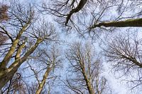 In de winter zijn ze geen bladeren in de boomtoppen in het bos