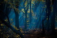 Het bos in blauw, het eerste licht dat nog vrij koel is en daardoor een aparte sfeer oproept