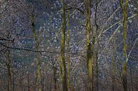 dubbelopname met twee foto’s van verschillende bomen. door digitale bewerkingen is een mooi gekleurd beeld ontstaan.