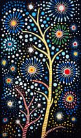 Deze boeiende serie kunst in Australische Aboriginal-stijl is een diep eerbetoon aan het rijke culturele tapijt en de eeuwenoude verteltradities van inheemse gemeenschappen. Door gebruik te maken van de iconische stippenschildertechniek weeft elk stuk op ingewikkelde wijze een complex verhaal samen dat een eerbetoon is aan de Dreamtime, het mythische rijk waar voorouderlijke geesten de wereld vormgeven. De doeken barsten van de caleidoscoop van aardetinten, die doen denken aan de ruige landschappen van de Australische outback, terwijl ingewikkelde patronen en symbolen de kijkers uitnodigen om dieper in te gaan op de spirituele en culturele dimensies van het werk. Geworteld in een eerbied voor het land en zijn heilige geschiedenis, biedt deze serie niet alleen visueel genot, maar ook een verrijkende, educatieve ervaring die de kloof tussen oude wijsheid en hedendaagse kunst overbrugt.
