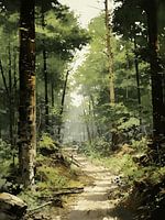 Dit werk vangt de rustige schoonheid van een bospad dat door dichte, groene bomen kronkelt. De zachte kleuren en diffuse verlichting creëren een vredige en bijna mystieke sfeer. Het pad in de verte nodigt de kijker uit om een reis door de natuur te maken. De scène is een eerbetoon aan de ongerepte schoonheid van het bos en het kalmerende effect van de natuur.