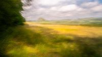 een wandeling in het Ulvenhouts bos . Zicht op de bosrand, waarbij de zon zijn schaduw werpt op het grasland . De foto is gemaakt met ICM methodiek om een schilderachtig beeld te krijgen in combinatie met de zachte kleuren