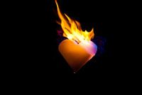 Experiment mit entflammten Papierherzen in dunkler Nacht