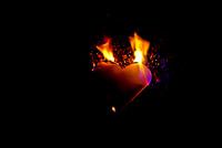 Experiment mit entflammten Papierherzen in dunkler Nacht