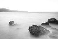 Een rustig beeld van rotsen in de zee aan de spaanse kust.