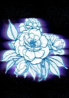 een camelia bloem lijnkunst met hologram effect