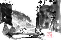 Oude Japanse techniek uit de 8e eeuw. Het bestaat uit het tekenen van slechts enkele lijnen met Chinese inkt op papier. Dit maakt deel uit van de zen-cultuur.