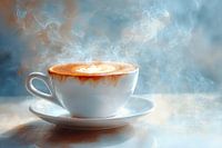 digitaal beeld van warm kopje cappuccino of koffie thuis of in een horecagelegenheid
