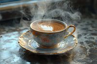 digitaal beeld van warm kopje cappuccino of koffie thuis of in een horecagelegenheid