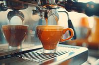 digitaal beeld van de bereiding van een kop koffie of cappuccino in een horecagelegenheid of gewoon thuis met een koffiezetapparaat