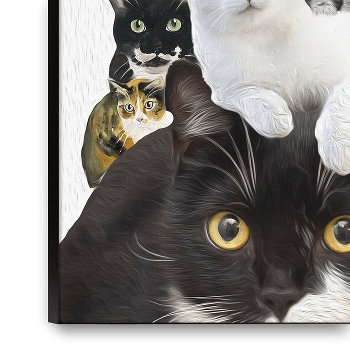 Schilderij van deze grappige huiskatten op elkaar gestapeld. Deze stapel lieve poezen is leuk in een echte katten liefhebber.