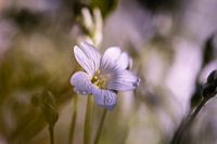 macro van witte bodembedekker, cerastium, met witte zachte achtergrond