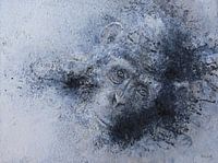 Schilderij van een chimpansee, gemaakt door Peter van Loenhout.