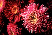 chrysanthemum bloemen in de herfst, grote roze rode bloemen voor zwart, sterke kleuren, schoonheid in de natuur, bloemen in de zomer, chrysanthemum foto, florale motief