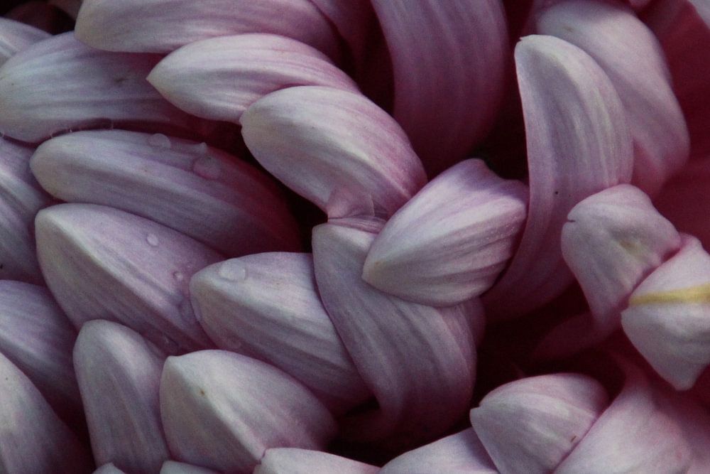 Het is een dichtbij gemaakte foto van een bloem. Hij is gemaakt met een macro filter van +4.