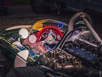 klassieke lotus formule auto cockpit en stukje motor