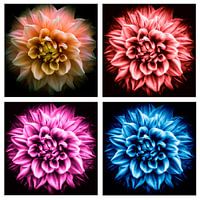 Dahlia bloem in 4 verschillende kleuren op zwarte achtergrond