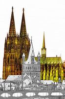 de kathedraal en de st. martin van Keulen in de nacht en als tekening