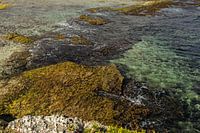 De kust in Curaçao is hier bijzonder mooi gekleurd met verschillende kleuren en texturen.