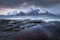 Dit strand was wel één van de mooiste stranden van de Lofoten met zonsondergang troffen we nog net wat kleur in de lucht