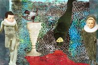 collage op gelli print van gelli prints en afbeeldingen, tekst in posca