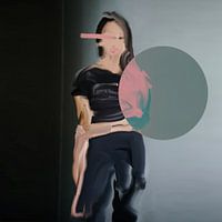 Portret in zwart en roze tinten van Aziatische vrouw. Moderne bewerking, fotografie in combinatie met olieverf, digitaal bewerkt.