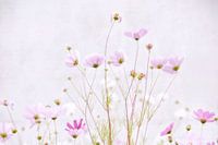 delicate zomerbloemen in roze en roze, Cosmeas dansen in het zonlicht