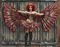 digitaal nostalgisch illustratief beeld van vrouwen in cabaret boudoir stijl Moulin Rouge dans