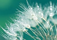Macrobeeld van een paardenbloem met dauwdruppels.