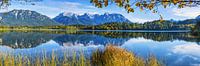 Op een prachtige oktoberdag ligt de Barmsee stil en helder voor me, genesteld in het schilderachtige landschap van het Werdenfelser Land in Opper-Beieren. De zachte golven van het meer weerspiegelen de helderblauwe hemel, terwijl de majestueuze toppen van het Karwendelgebergte trots op de achtergrond oprijzen. In de heldere herfstlucht steken de ruige bergtoppen, af en toe nog bedekt met sneeuw, duidelijk af tegen de hemel. De kleuren van de natuur stralen in het gouden licht van de herfst: sappige groene weiden, de roodbruine en gele bladeren van de bomen die het meer omringen als kleine kleurspatten en het diepblauwe water dat glinstert in de zon.