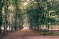 Landschap op natuurgebied de Ginkel in Ede, op de Veluwe in Gelderland, met zicht op een bomenlaan. Er is gebruik gemaakt van meervoudige belichting, waar 7 foto's werden samengevoegd, wat voor een schilderachtig effect zorgt.