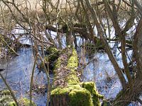Natuurgebied in de Meije. Moerasgebied. Noord-Holland, bemoste boom, verrotting in water. De Haeck, Nieuwkoop.