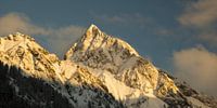 Een stille winterdag in januari loopt ten einde en de wereld houdt zijn adem in terwijl de zon langzaam achter de westelijke top van de Höfats verdwijnt. De lucht is helder en fris, de sneeuw knispert zacht onder de voeten en de toppen van de Allgäuer Alpen gloeien in het laatste gouden licht. De imposante westelijke top van de Höfats, met zijn markante rotswanden en steile bergkammen, rijst majestueus de hemel in en baadt in een warm, bijna onwerkelijk licht door de zachte stralen van de ondergaande zon.