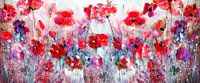 Een kleurrijke bloemenfoto met klaprozen in pastelkleuren voor in de woonkamer. Het straalt optimisme en vrolijkheid uit. De schoonheid van de natuur is altijd een onuitputtelijke bron van inspiratie. Bloemenfantasieën worden kunstig geënsceneerd...bloemen, bloesems, bladeren