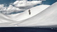 Een enkele boom die zich verdedigt tegen de hardheid van de winter. Deze boom viel me meteen op toen ik een reis naar de Dolomieten maakte. Zachte besneeuwde heuvels en deze enkele boom waren een prachtig onderwerp. Sneeuw
