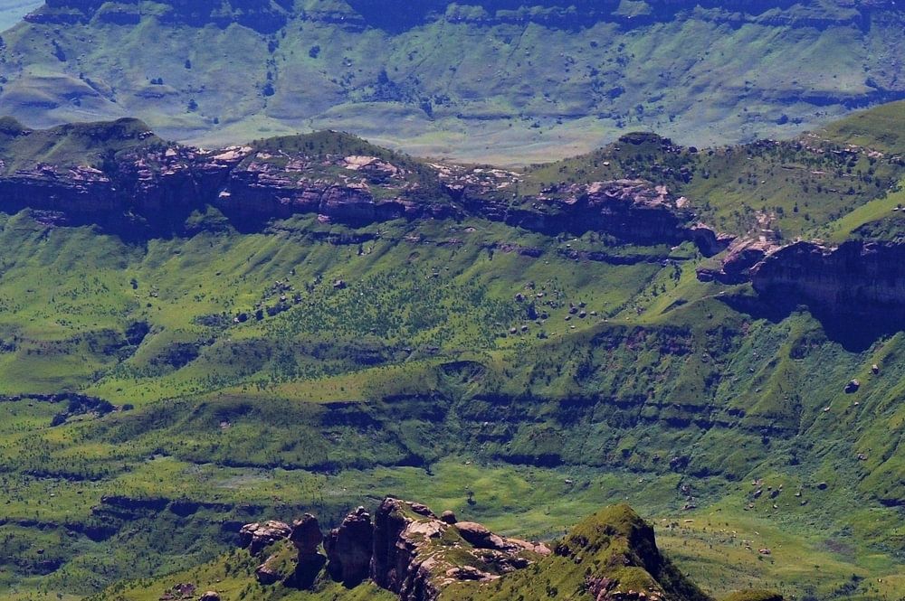 Landschap met de groene Drakensbergen in Kwazulu Natal in Zuid-Afrika