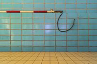 voor alle mensen die met angst en beven vroeger de eerste zwemlessen hebben gevolgd deze imponerende haak waarmee de badmeester menig kind over de watervrees heen heeft geholpen. De foto is gemaakt in het nu lege bassin van het vroegere zwembad De Blikken...