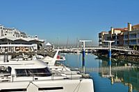 Landschap met de jachthaven op Harbour Island in Gordons Bay
