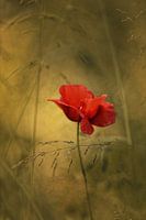 enkele rode klaproos bloesem tussen grassen