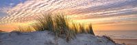 Een prachtig panorama beeld van een Hollands duinlandschap tijdens een zonsondergang met ook zicht op de Noordzee en het strand.