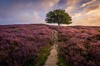De heuvel op de posbank ik paars gekleurd door de bloeiende heide.
