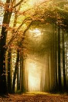 Herfst scene met mist en zonnestralen. Landgoed Velhorst in Gelderland